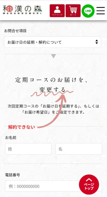 「解約のお客さまはこちら」をタップして、初めて解約用の入力フォームが出てきます。