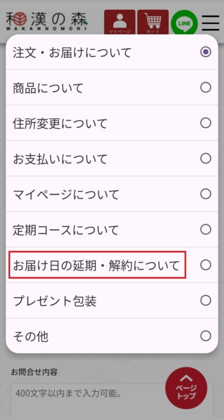 一方、解約の場合は完全にやめてしまうので、電話同様に理由を聞く代わりに選択欄があるようです。